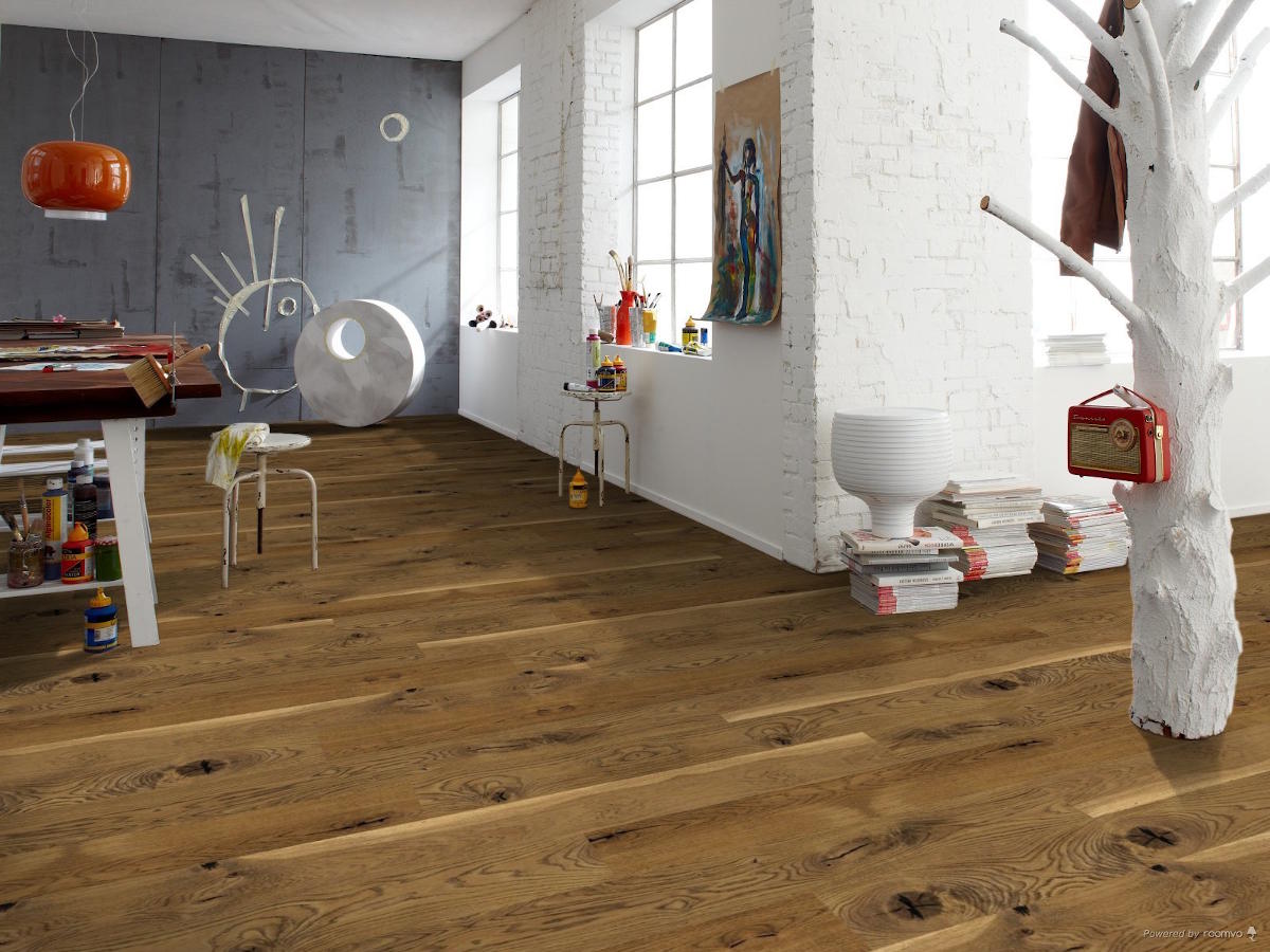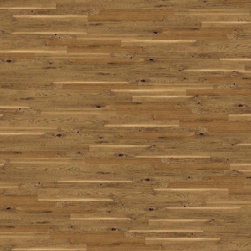 Casapark-Landhausdielen mit einer grosszügigen Länge von 2200 mm, betont wird die eindrückliche Dimension durch die längsseitige Fasung. Je nach Produkt können die Dielen durchgehend in der gleichen Breite oder in einer Kombination von mehreren Breiten verlegt werden. Casapark ist dreischichtig aufgebaut, hat eine Nutzschicht aus europäischer Eiche von 3,5 mm und ist gut geeignet für Bodenheizungen.