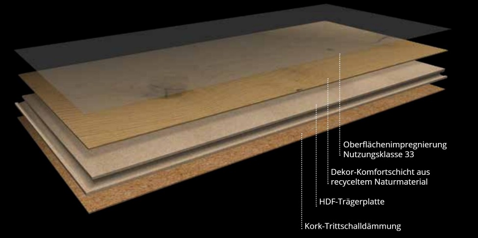 Trittschalldämmung: 1,2 mm recycelter Kork