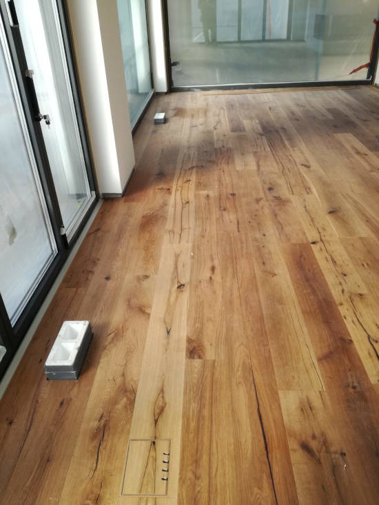 Wir legen Ihnen den schönsten Boden zu Füßen. Nutzen Sie die langjährige Erfahrung unseres Meisterbetriebes. Überlassen Sie nichts dem Zufall. Gerne schauen wir uns die Gegebenheiten vor Ort an, auch hier kann auf Wunsch ein Meister bei der technischen Umsetzung helfen. Auf Fußbodenheizung empfehlen wir immer eine vollflächige Verklebung, dies hat den Vorteil, dass wir große Flächen ohne Dehnungsfugen legen können. Die Wärme kann direkt ohne Umwege durch das Material. Gerne bauen wir auch eine bündige Glasplatte vor einem Kamin ein (gegen Aufpreis) oder belegen Ihre Stufen mit dem gleichen Parkett.