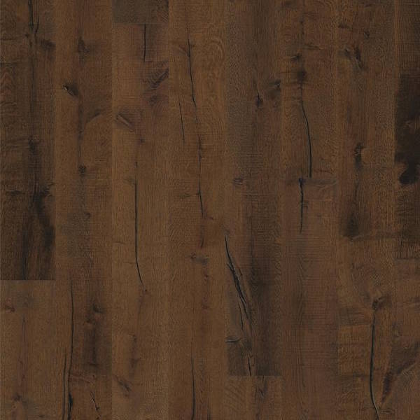 Dunkle, an Holzkohle erinnernde Stellen unterlegt durch einen leichten Glanz an wamen Nuancen. Tveta sind extrem rustikale Dielen mit Ästen, Rissen und Füllungen.