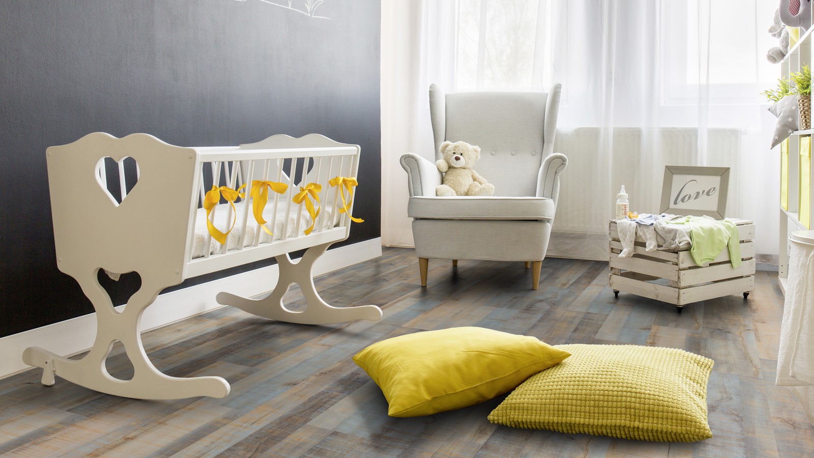 Holzdekor im Used-Look mit lebendigen Farbkontrasten
