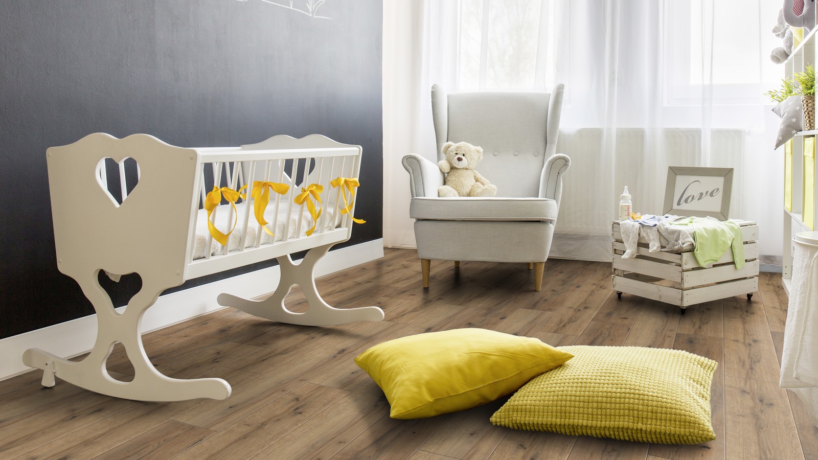 Dieses klassische Eichendekor zeigt neben einem Farbkontrast auch Fehler und Abnutzungsspuren auf. Die Prägung unterstützt die starke Maserung des Dekores. Äste und Strukturen treten durch die Prägung deutlich hervor. Innerhalb einer Fläche gibt es einen Farbkontrast, der das "Holz" authentisch erscheinen lässt.Der Charakter dieser Eiche ist geprägt durch Wurmlöcher und einen großen Farbkontrast.