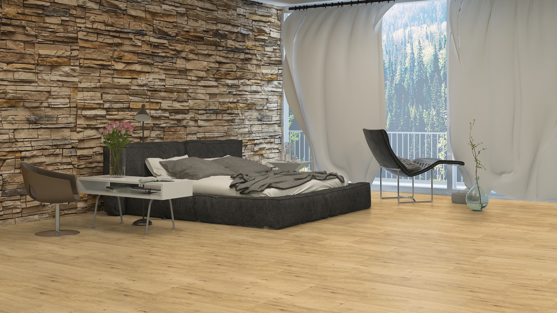 Parquet-Planke mit schönem, natürlichen Farbspiel und edler Holzstruktur, ideal für Verlegungen im Fischgrätmuster.