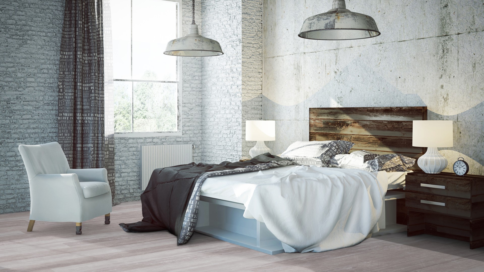 Graue Planken mit subtilem Mix aus Textil/Stein/Holz erzeugen starke Effekte im Raum.