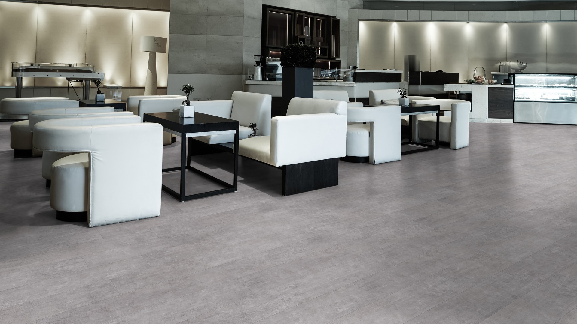 Graue Zementplanke mit fossilem Charakter für Räume mit einem besonderen Flair.