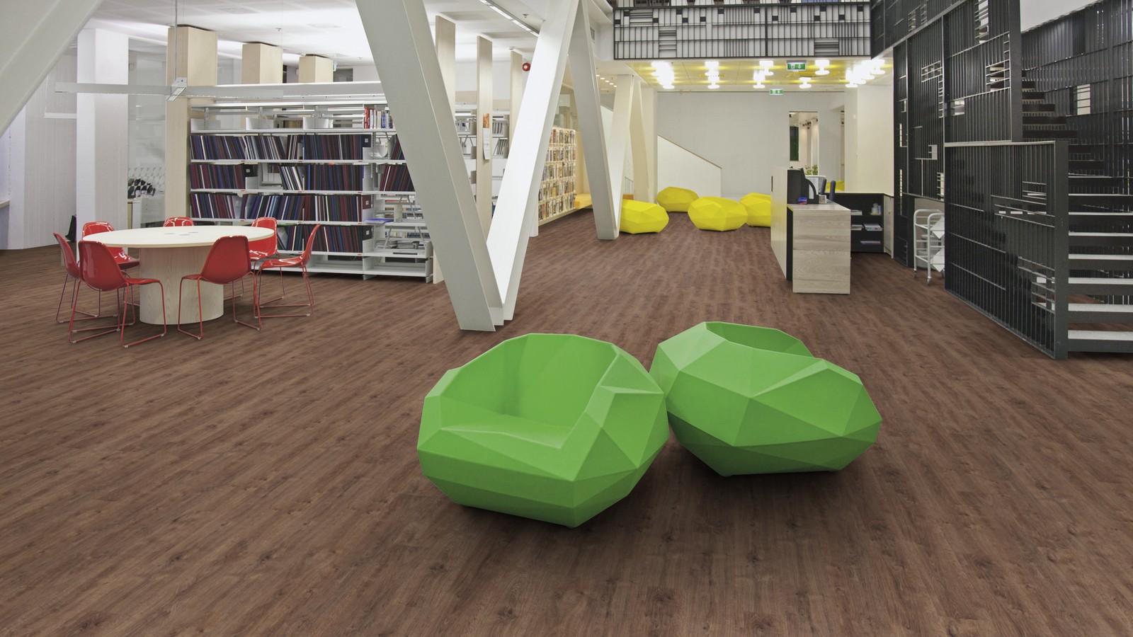 Dezent und ruhig spielt das Dekor der klassischen Eichenplanke allein mit den Farbtönen und der feinen Linien-Struktur des Holzes.