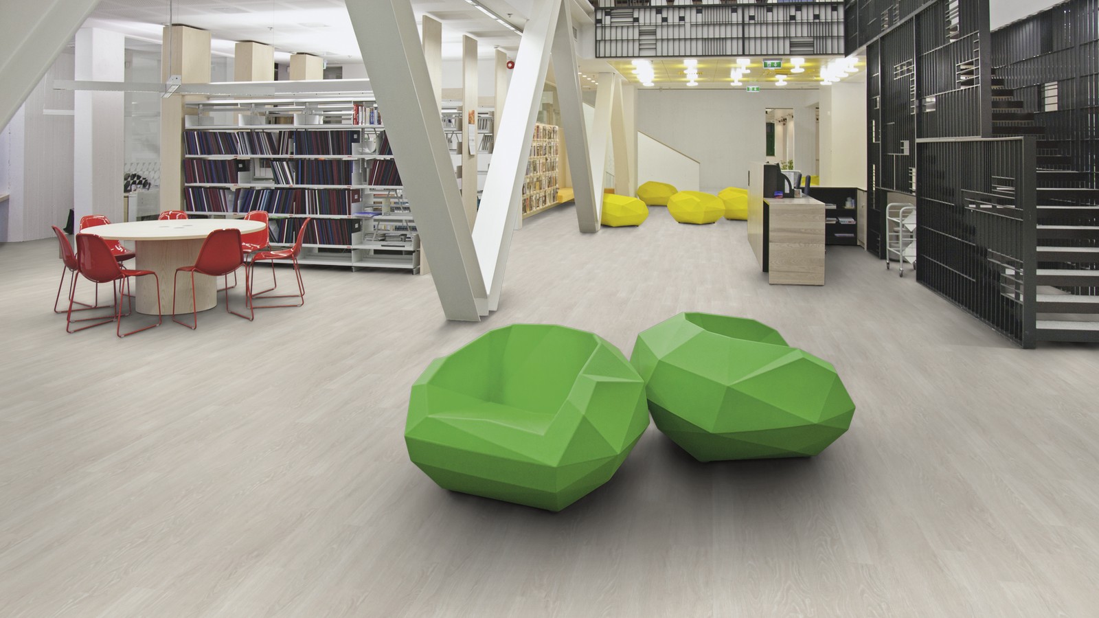 Nur erahnen lässt sich das Holzdekor der Eiche. Umso vielseitiger sind White Oak‐Planken einsetzbar.
