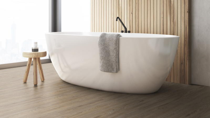 Wasserfest – für Feuchträume geeignet EXPONA CLIC 19dB Böden sind wasserfest. Sie quellen beim Kontakt mit Wasser nicht auf und eignen sich somit hervorragend auch für Küche und Bad.