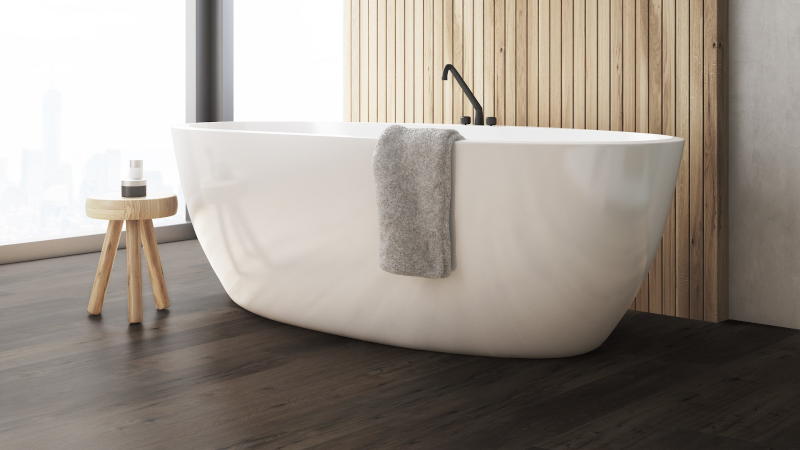 Wasserfest – für Feuchträume geeignet EXPONA CLIC 19dB Böden sind wasserfest. Sie quellen beim Kontakt mit Wasser nicht auf und eignen sich somit hervorragend auch für Küche und Bad.