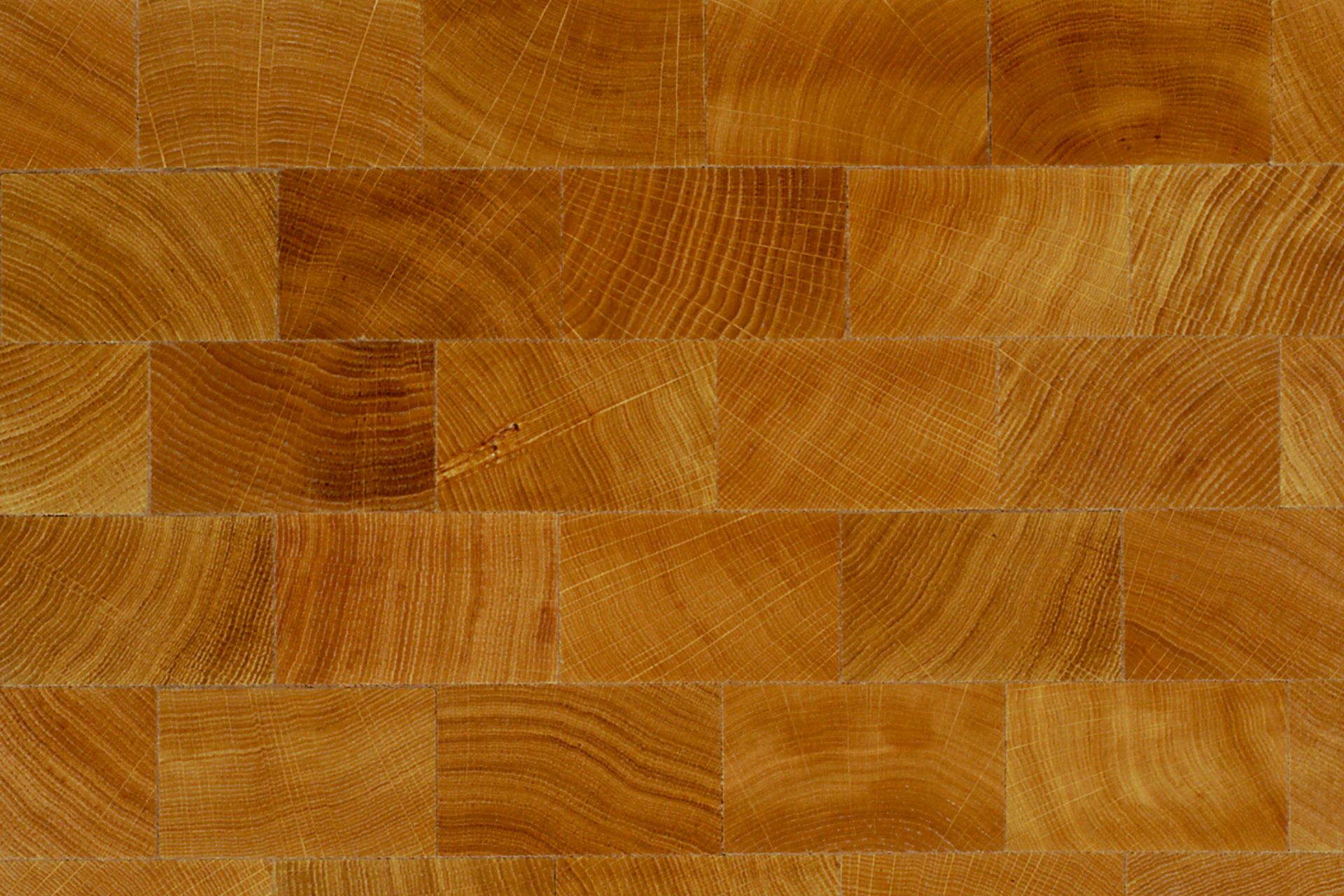 Die einzigartige Struktur der Baumjahresringe prägt den charakteristischen Charme unseres exklusiven "Premium-Holzpflasters RE" – für atemberaubende Bodenflächen.