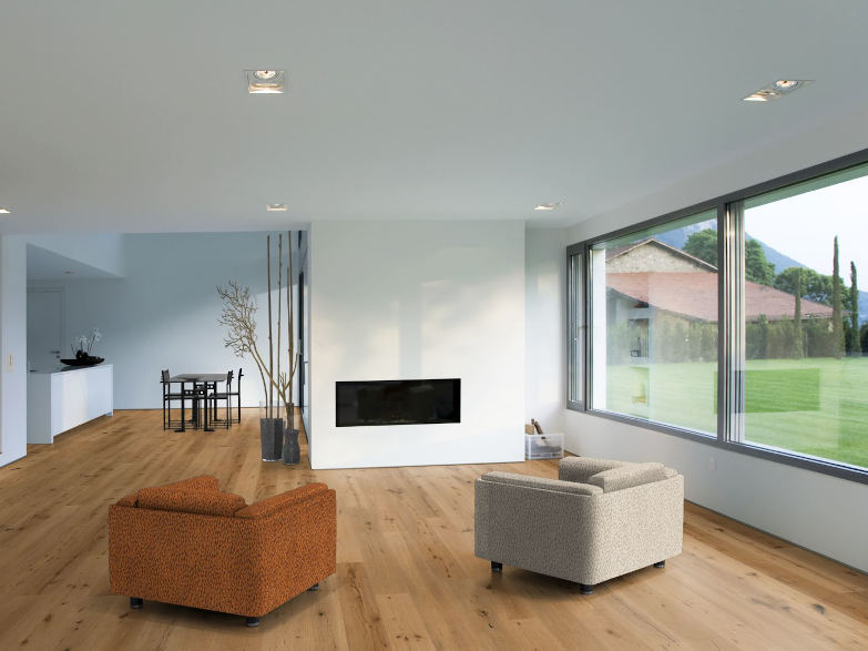 Die Landhausdiele steht für Lebensstil, Wohnlichkeit und Wohlempfinden. Strapazierfähiger geölter Holzboden. Parkett im Landhausdielen Format mit einer Klick-verbindung zur leichten verlegung. Auf einer Fußbodenheizung empfehlen wir eine vollflächige verklebung.Holzboden Eichenparkett