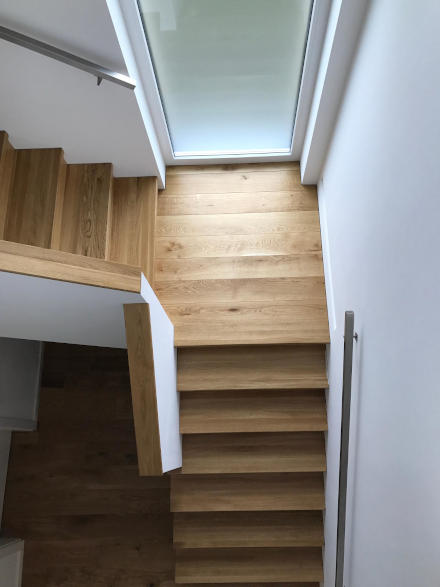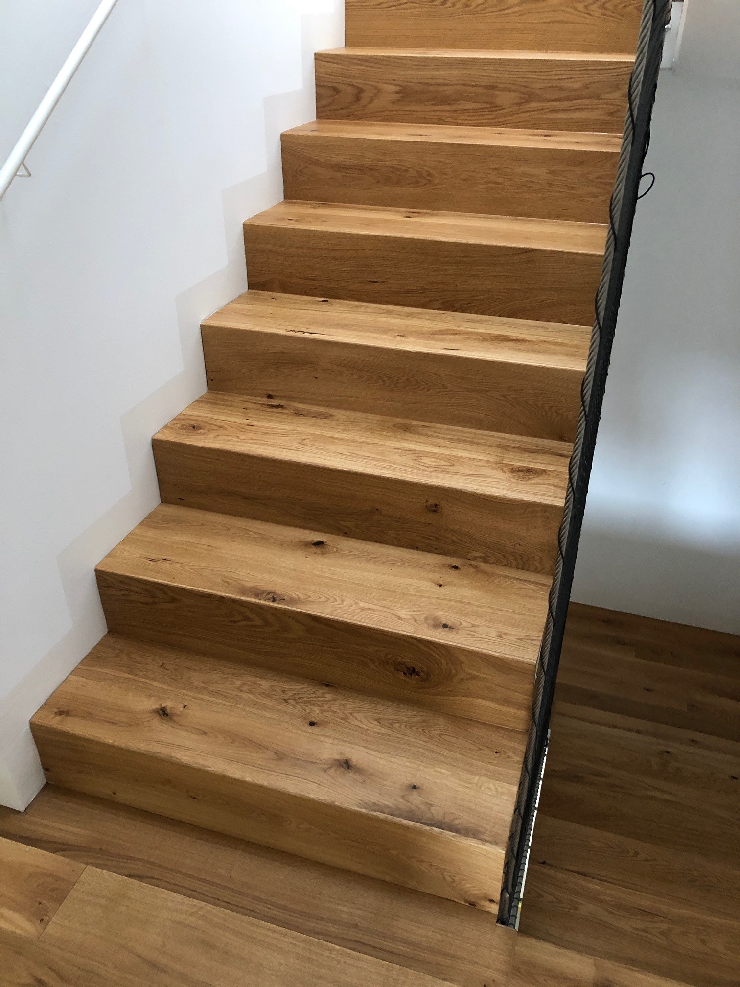Wir legen Ihnen den schönsten Boden zu Füßen. Nutzen Sie die langjährige Erfahrung unseres Meisterbetriebes. Überlassen Sie nichts dem Zufall. Gerne schauen wir uns die Gegebenheiten vor Ort an, auch hier kann auf Wunsch ein Meister bei der technischen Umsetzung helfen. Auf Fußbodenheizung empfehlen wir immer eine vollflächige Verklebung, dies hat den Vorteil, dass wir große Flächen ohne Dehnungsfugen legen können. Die Wärme kann direkt ohne Umwege durch das Material. Gerne bauen wir auch eine bündige Glasplatte vor einem Kamin ein (gegen Aufpreis) oder belegen Ihre Stufen mit dem gleichen Parkett.