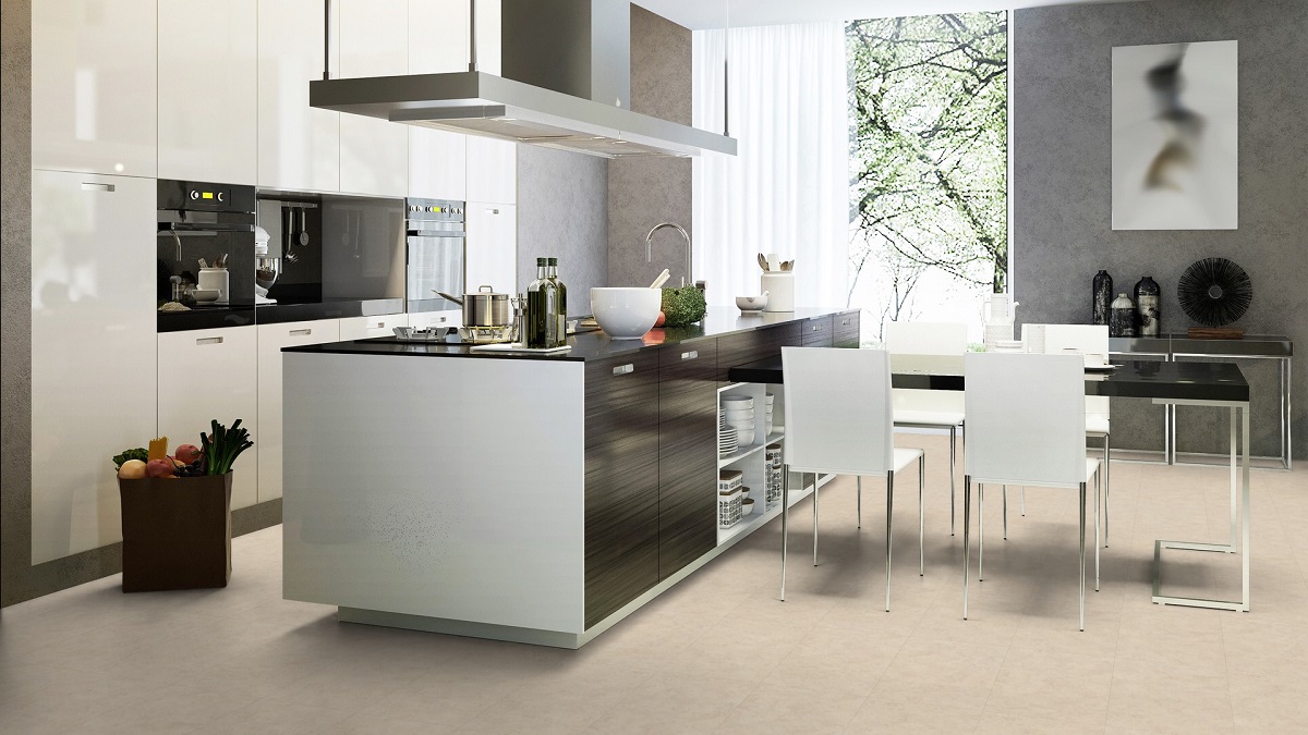 Dezente Fliese in hellem Beigeton mit natürlicher Steinstruktur. Für Bodenflächen, die Gelassenheit und Ruhe ausstrahlen.