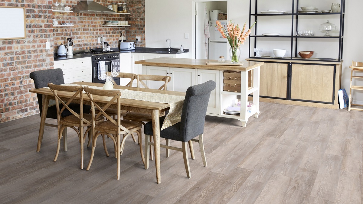 Authentische Eiche in hellem Farbton mit rustikaler Prägung und natürlichem Farbspiel. Für Räume mit Wohlfühlcharakter.
